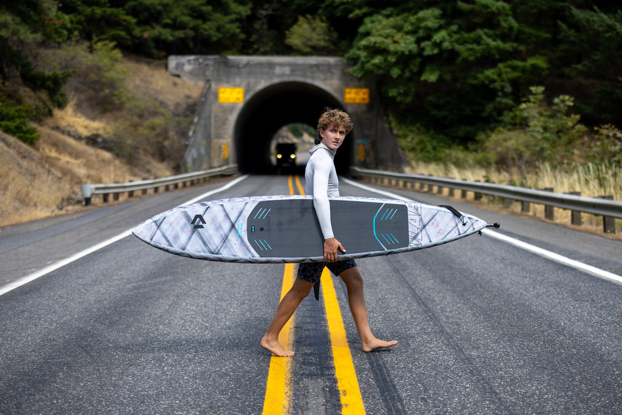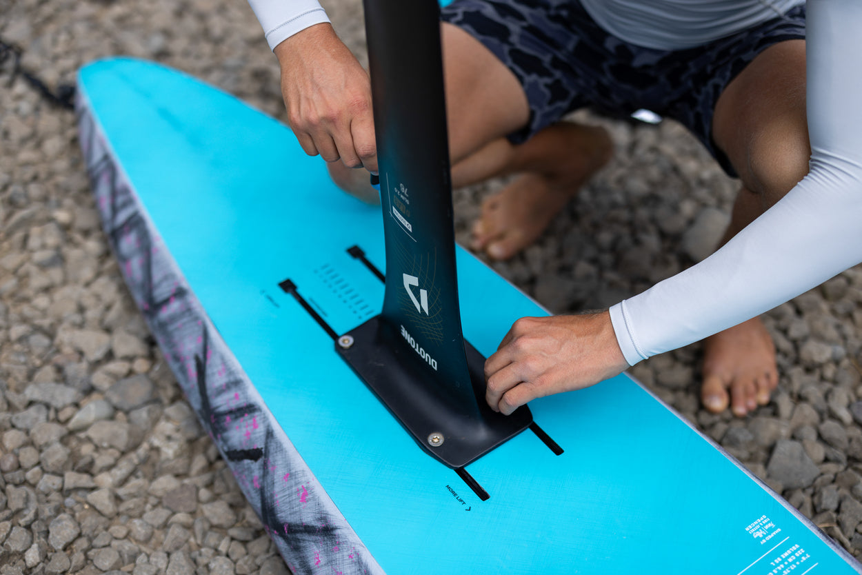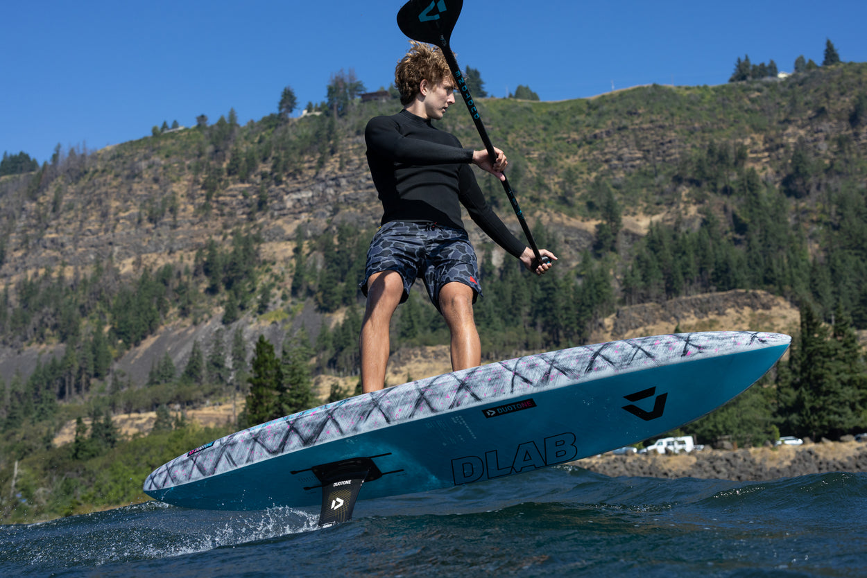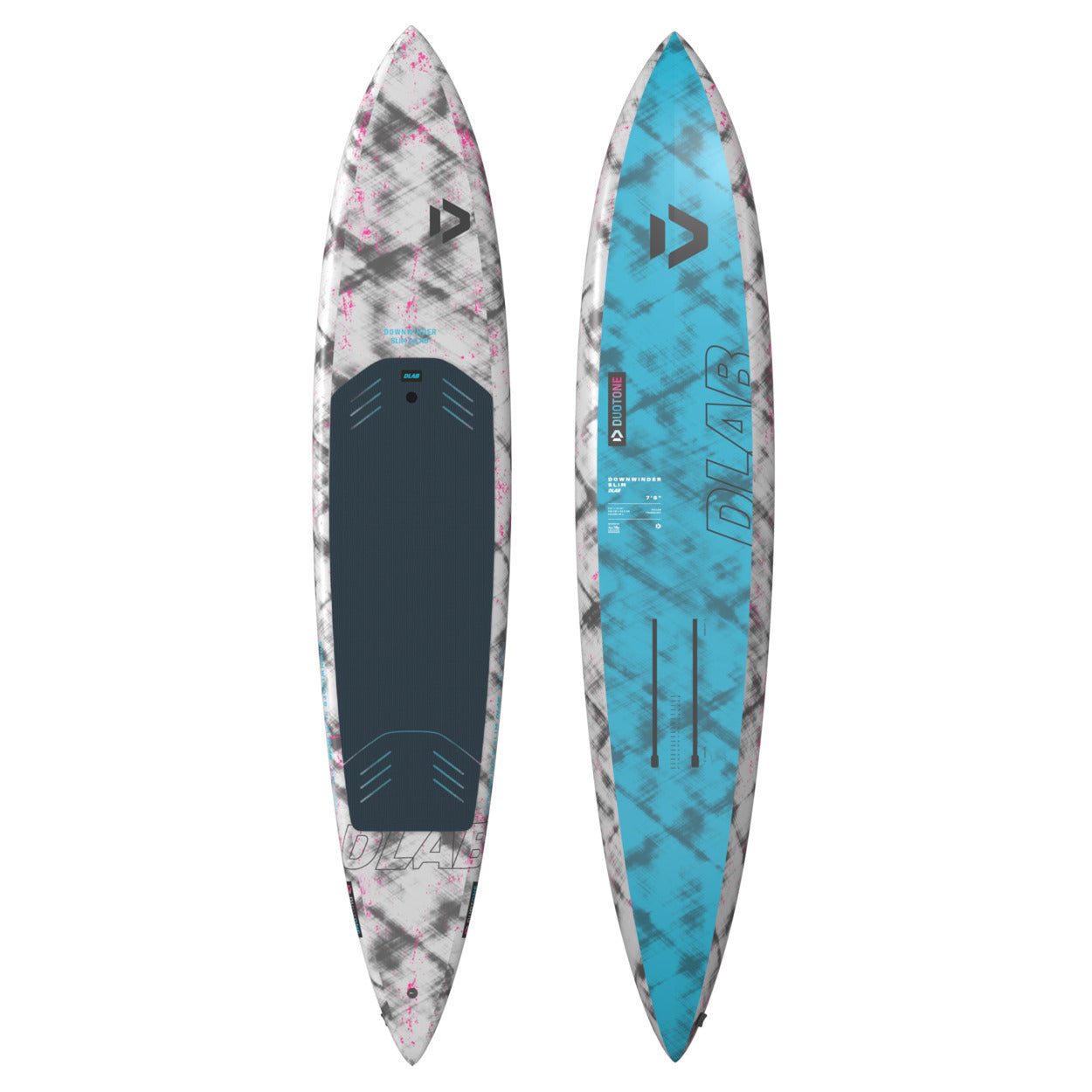 The Downwinder Slim D/LAB sets a new standard in foiling innovation, featuring our cutting-edge Hollow Shell Composite construction for unmatched weight savings and stiffness.As the latest addition to the D/LAB range, this board delivers incredible performance with the easiest take-off and earliest release. Its ultra-low swing weight provides pumping and response that feel close to a much smaller board - while still offering the advantages of volume and buoyancy. Thanks to the Hollow Shell construction, the board is nearly 30% lighter than the SLS models -approximately 1.6kg less - resulting in faster acceleration and improved paddle speed, completely transforming your downwind foiling experience. A sleek, narrow outline makes for quick acceleration and smooth transitions. Tail rocker supports effortless take-offs and adds clearance when pumping. The clean monoconcave bottom ensures uninterrupted speed and easy recovery when touching down.Long Carbon foil tracks provide maximum trimming options to suit a wide range of foil types, offering a truly adaptable setup. A large air vent and drain plug allow pressure to release when not in use, keeping the board in optimal condition.Available in 7'8" x 17.75" (95l) and 8'4" x 18.5" (110l) sizes, the Downwinder Slim D/LAB is the ultimate tool for riders aiming to elevate their SUP downwind game. Experience unmatched agility and precision with the Downwinder Slim D/LAB ‚ where innovation meets superior performance in every ride.