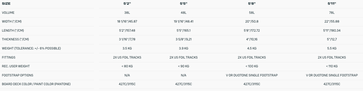 It features a mid-length shape with a narrow outline, designed for powerful carves while maintaining total control. Thanks to its slim design, the connection to the foil is direct, offering an outstanding responsive feel. The low rocker contributes to a flatter surface area, providing greater stability while riding and making it easier to get up on the foil.